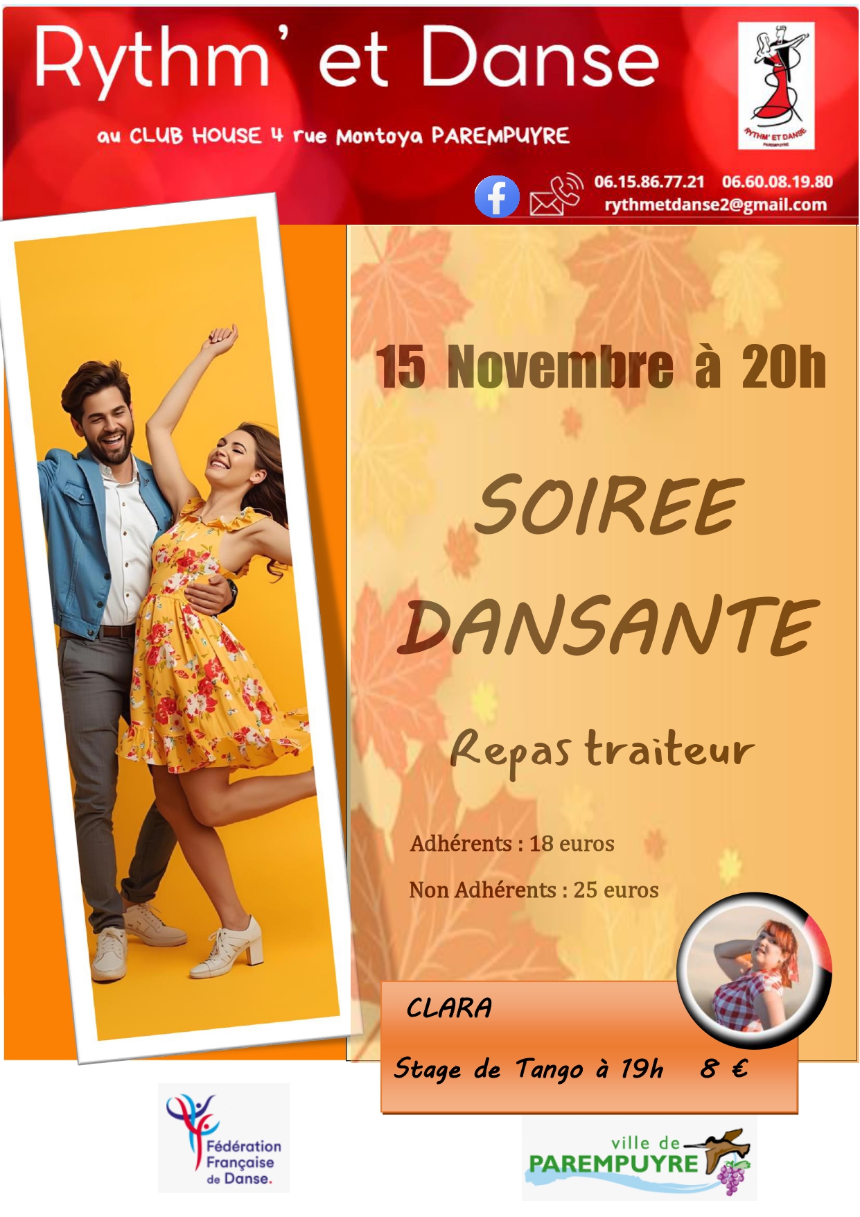 - Repas traiteur et soirée non adhérent : 25€ (Nb de places limité)